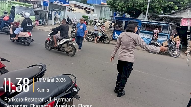 tribratanewsflorestimur.com – Polres Flores Timur, Polda NTT. Pelaksanaan Operasi Ketupat Turangga 2026, situasi arus lalu lintas di wilayah Kota Larantuka terpantau dalam keadaan landai dan lancar. kamis 19/03/2026. Tampak Personel Polwan ( Polisi Wanita ) yang bertempat di Pos Pengamanan Pasar Inpres Larantuka terlihat aktif melaksanakan pengaturan arus lalu lintas guna memastikan kelancaran mobilitas masyarakat, khususnya di kawasan pusat aktivitas ekonomi.