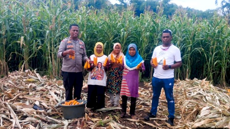 Polsek Adonara Dukung Program Ketahanan Pangan Lewat Panen Jagung Bersama Poktan