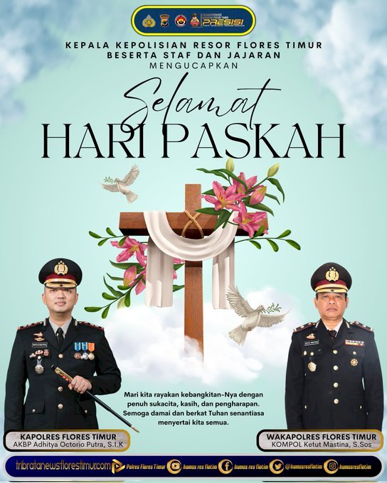 Kepala Kepolisian Resor Flores Timur beserta Staf dan Jajaran mengucapkan selamat Hari Paskah, 5 April 2026