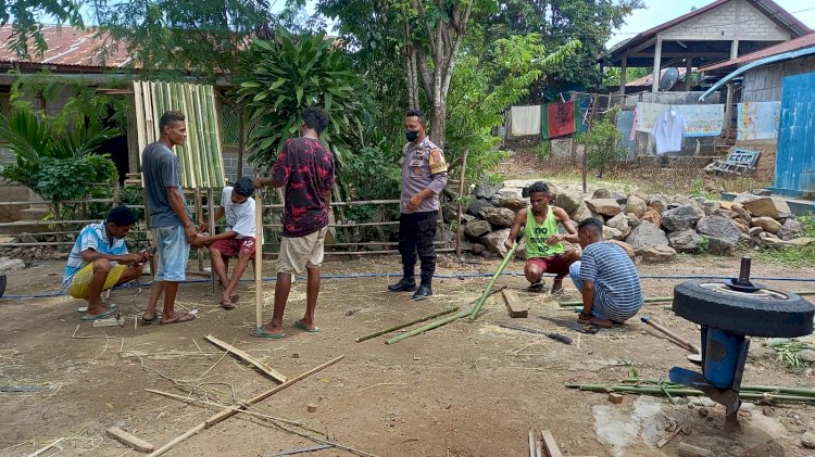 Tak ketinggalan Juga Bpk Ibel Kabelen yang sedang membuat aksesoris Natal di rumahnya Ketika Disambangi Bhabinkamtibmas Bripka Oskar Odjan yang sekaligus berikan himbauan Kamtibmas .