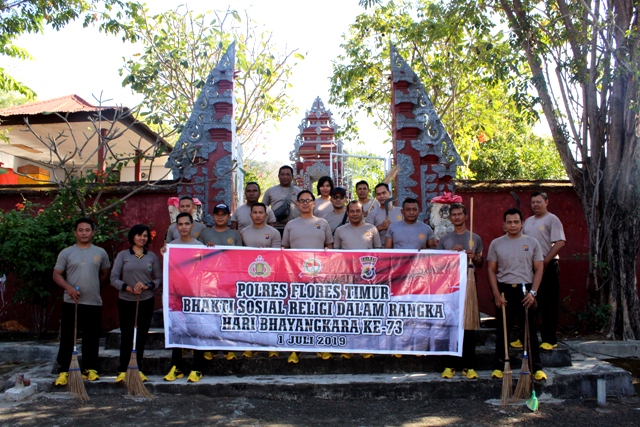 Tribratanewsflorestimur.com – Polres Flotim, dalam rangka menyambut Hut Bhayangkara ke - 73 Polres Flotim lakukan bersih – bersih tempat ibadah ( bhakti sosial Religi ) yang dipimpin langsung Wakapolres Flotim Kompol Gede Putra Yasa, SH diikuti para perwira dan seluruh anggota Polres flotim.