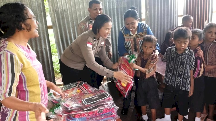 Sentuhan Humanis Polres Flotim, Siswa Sekolah Tertinggal Terima Bantuan Alat Tulis