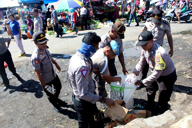 Tribratanewsflorestimur.com – Polres Flotim Polda NTT, dalam rangka menanggulangi dan pencegahan terjangkitnya virus corona, anggota Polres Flotim lakukan bersih – bersih / kurvei yang bertempat di pasar impres Larantuka Kel. Ekasapta Kec. Larantuka Kab. Flotim. Sabtu 14/02/2020