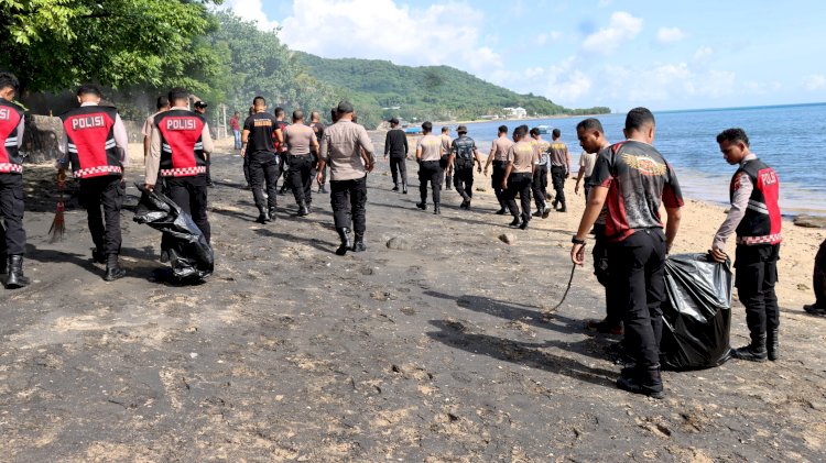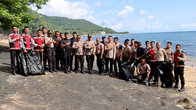 Tindaklanjuti Arahan Presiden RI, Polres Flotim Bersihkan Kawasan Wisata Pesisir